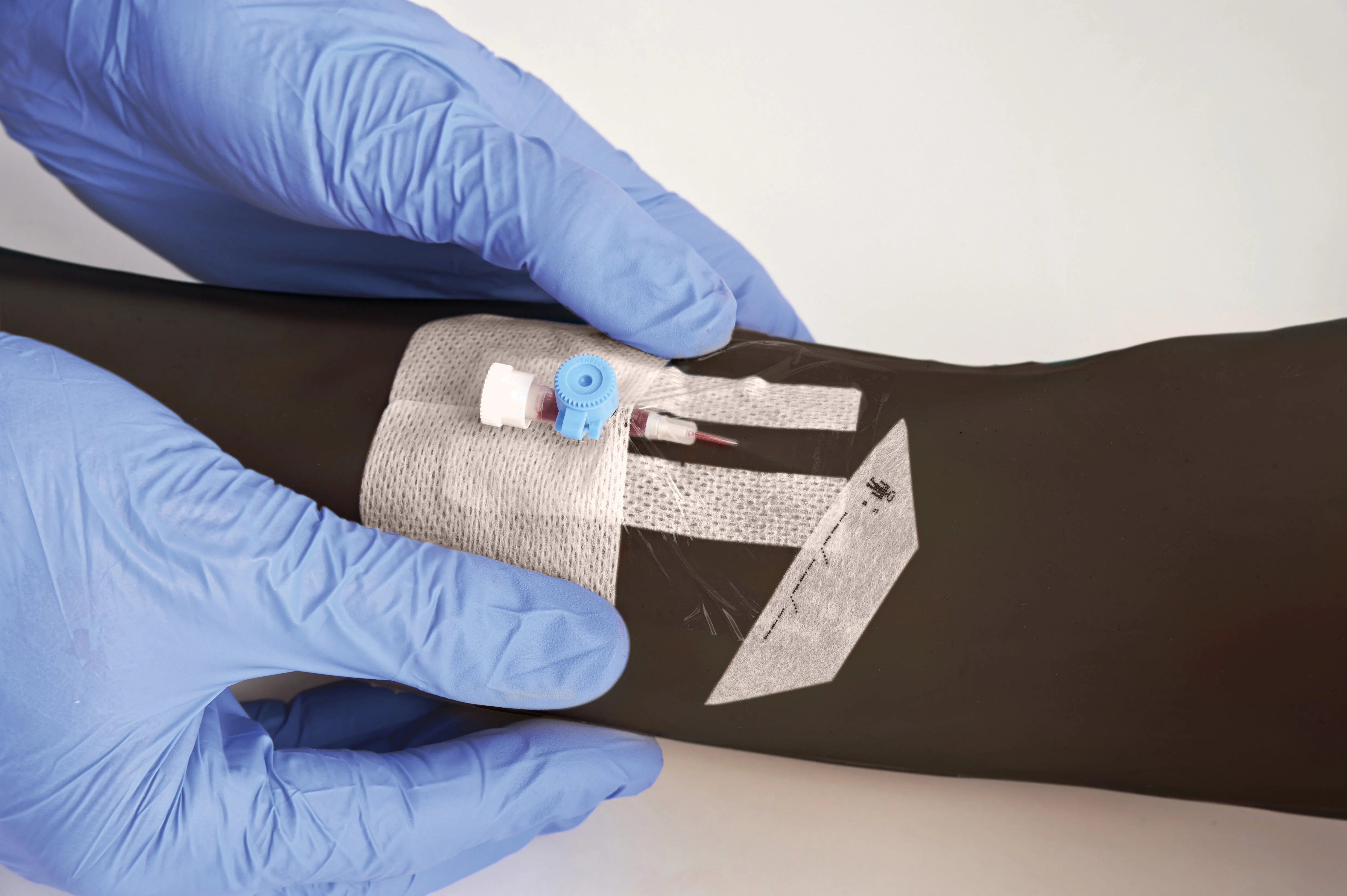 - When charged with artificial blood, a realistic ‘flashback’ confirms correct needle location in the vein and blood can then be withdrawn