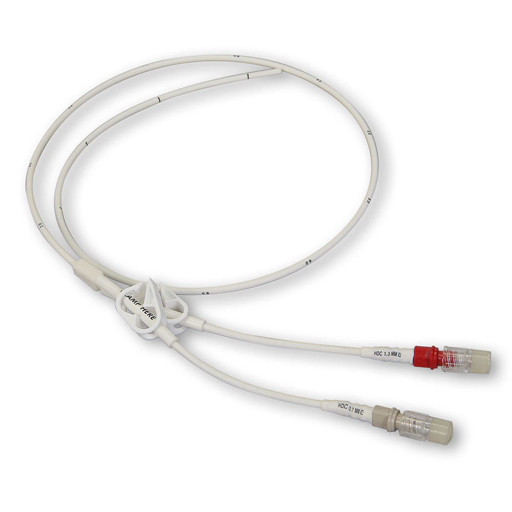 Tunnelled dual lumen catheter 9.6Fr, 29.5″ long, with snap clamps. This product is nonsterile and not intended for human use.