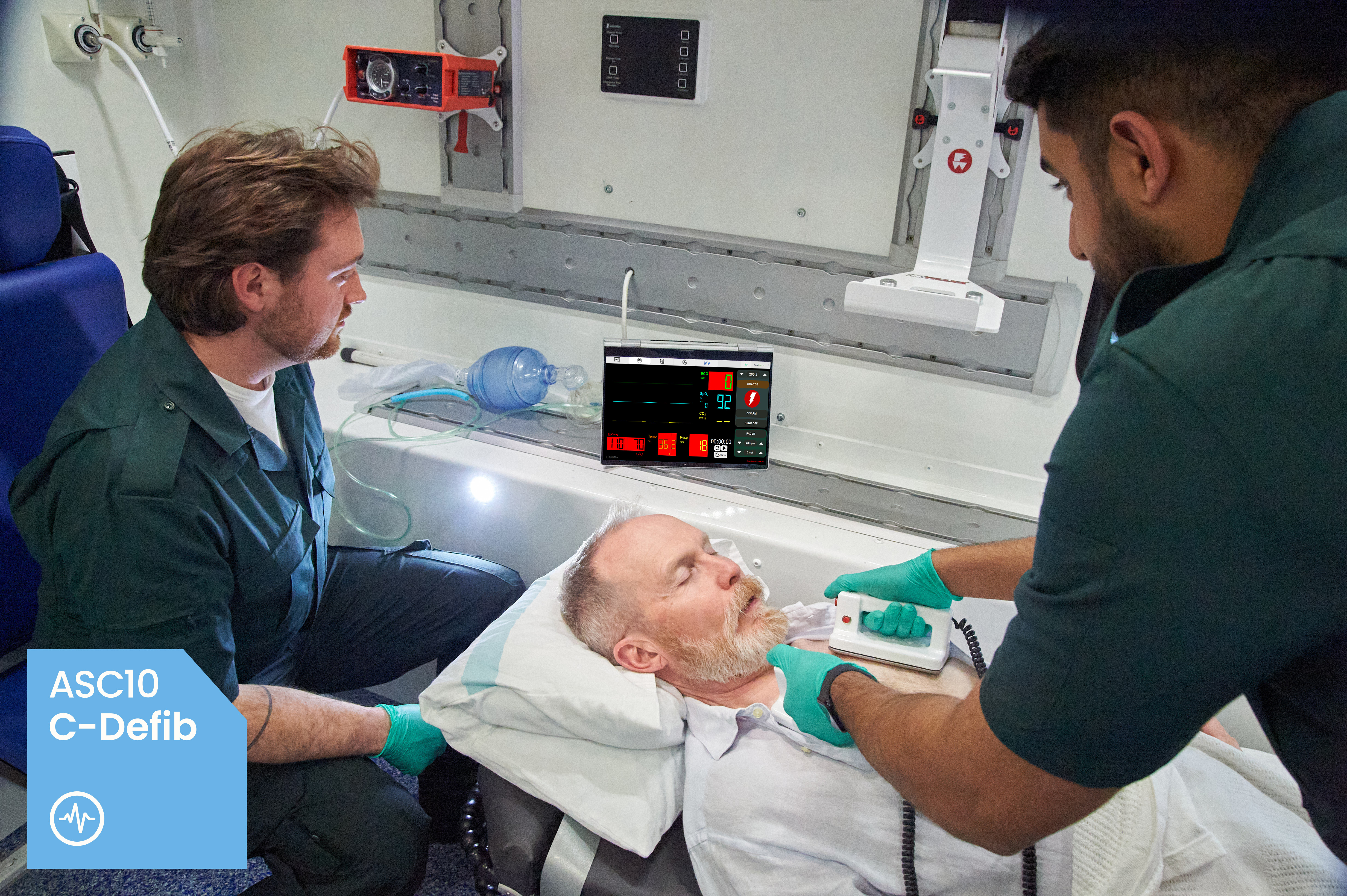 C-Defib has been designed to practice defibrillation safely, without applying a real shock, making the system safe for use with a standardised patient or low-fidelity manikin. In the C-Defib software module, adjustments to energy delivery can be made, as in real life, via the ASC02 C-Mon – Hybrid Patient Monitor. The tutor can control the C-Defib via the ASC01 C-Panel – Control Module.